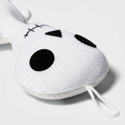 Add a spooky touch to your seasonal display with this 38-Inch Falloween Knit Skeleton Halloween Decorative Figurine from Hyde & EEK! Boutique™. Knitted in white polyester fiber with black accents for the eyes, nose, mouth and more, this fun soft sculpture is sure to stand out among your other Halloween decorations. Suitable for indoor use, it works well as part of a tabletop arrangement or hung up from the attached loop right in your window to welcome trick-or-treaters.