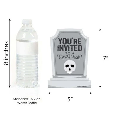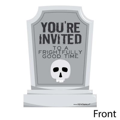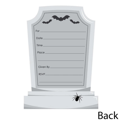 Graveyard Tombstones Fill-In the Blank Invitation Set INCLUDES 12 cemetery party invitations and 12 premium white envelopes. Graveyard Tombstones fill-in invitations are perfect for any event. The Graveyard Tombstones theme is great for a Halloween party. Tombstones party invitations SIZE 5 inches by 7 inches. The included envelopes measure 5 inches by 7 inches. The back of each Graveyard Tombstones party invitation has space to add your party details: For: Date: Time: Place: Given By: RSVP: PREMIUM PARTY INVITATIONS: Headstone party invitations are professionally printed on heavy-duty card stock paper with a photo-like shine. They are individually inspected, then carefully packaged with our exclusive squiggle flap envelopes, making this Graveyard Tombstones stationary set a must-have for any Halloween party. MADE IN THE USA: Graveyard Tombstones – Halloween Party Shaped Invitations are designed and manufactured at our Wisconsin facility using materials that are Made in the USA.