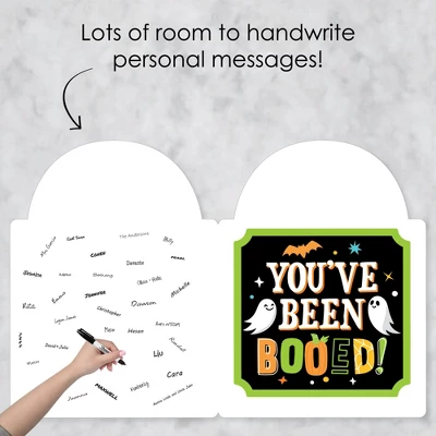 You’ve Been Booed Jumborific Card INCLUDES 1 giant greeting card made of corrugated plastic. Send a big happy message with an oversized card. GIANT GREETING CARD: With a Cute Spooky Ghost shaped top, front of card reads “Boo!”. Open card to “You’ve Been Booed!” message that is layered for extra dimension. Left side of inside will be blank with lots of room to handwrite personal messages. CUTE SPOOKY GHOST CARD: Wow a special occasion when you gift a Jumborific Card. The thick and sturdy plastic gives this card a unique display when in standing position and to be used for a memorable keepsake. Perfect way to say Merry Christmas. HIGH-QUALITY CARD: You’ve Been Booed Jumborific Card SIZE 16.5 inches wide (folded) x 22 inches tall. This giant greeting card is professionally printed on heavy-duty corrugated plastic with white edges. MADE IN THE USA: Big shaped Jumborific Card is designed and manufactured at our Wisconsin facility using materials that are Made in the USA.