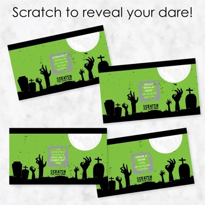 Zombie Zone Scratch-Off Dare Cards INCLUDES 22 Halloween or birthday zombie crawl party game cards with unique dares on each card. FUN PARTY GAME: Zombie Zone Scratch-Off Dare Cards will be enjoyed by Halloween or birthday zombie crawl party guests of all ages. Each game card measures 2.75″ tall x 4.75″ wide. Scratch-off dares aren’t very risque, so you can have a fun night out without next-day regrets. 3 WAYS TO PLAY: Simple – Hand out cards all at once or distribute throughout the night. Each cardholder scratches off their card to reveal their dare. Twist – Guests can opt out of their dare by buying the hostess a drink! Truth-Or-Dare – Opt out of a dare by answering a “TRUTH” question from the hostess or guest of honor. HIGH-QUALITY PARTY SUPPLIES: Zombie Zone Scratch-Off Dare Cards are professionally printed on heavy-duty cardstock paper with a photo-like shine. They are individually inspected and carefully packaged by hand. This fun Halloween or birthday zombie crawl party game will arrive ready to use at your party. MADE IN THE USA: Zombie Zone – Halloween or Birthday Zombie Crawl Party Game Scratch Off Cards are designed and manufactured at our Wisconsin facility using materials that are Made in the USA.